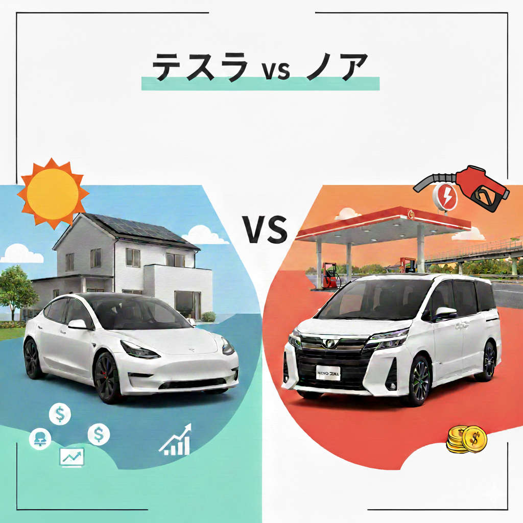 「テスラ(EV)とノア(ガソリン車)、4年後のトータルコストでお得なのはどっち?」